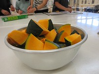 わかば・たんぽぽさんが学校で収穫したかぼちゃを使って、おいしく調理しました。