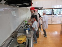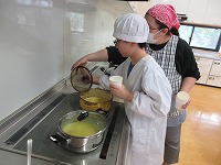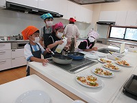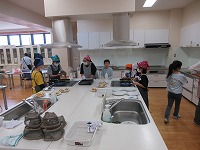 かぼちゃのスープにかぼちゃのサラダ、スィートパンプキンにかぼちゃピザなど、子ども達が目を輝かせてとても楽しそうに実習していました。味見をさせてもらいましたが、「とてもおいしいね!」と伝えると、嬉しそうに笑顔を見せてくれました。