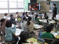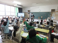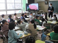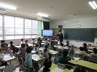 総合的な学習で米沢のABCについて学んでいる3年生。今日はBの米沢牛について石川先生からたくさんのことを教えていただきました。3年生にもわかるようにゆっくりと、わかりやすい言葉に置き換えて、楽しいクイズも交えながら進めていただきました。お土産もいただきまして、大変喜ぶ子どもたちでした。