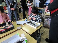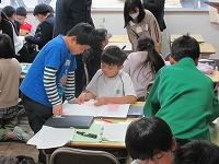 1年生は「あきのおもちゃをつくろう」秋探しで見つけてきた木の実などを使って、おもちゃ作りをしています。今日は、おもちゃの改善したいところを工夫して、パワーアップさせようという学習活動でした。迷路やヨーヨー、こま回しなど、直したいところを確認して友だちと一緒に進めました。