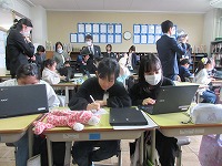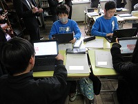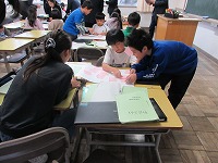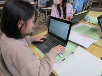 3年生は「発見!東部地区の宝」として、米沢藩や上杉家をテーマに調べて分かったことをグループでなかま分けして、ゲストティーチャーに尋ねる質問を考えようとする学習活動でした。3年生でタブレットを活用して、文字を打ち込んだ入り、がんばる様子が見られました。