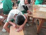 今日の授業から、4年生の木工作、3年生のくぎ打ち、5年生の味噌汁、6年生の紙粘土で将来の夢の様子です。