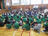 東部小学校では全校集会の時間に、児童集会として、各委員会の取り組みやお知らせなどを発表する機会を設定しています。自分たちの取り組みを表現する力や、仲間と共に主体的に考え、実践する力を育もうとするものです。今日は雪道の登下校について、6年生の代表児童が気を付けたいことなどを全校の前で発表しました。