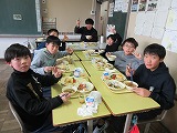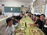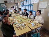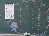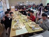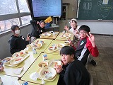 一品一品がどれもおいしそうで、選ぶのに迷ってしまう様子も見られました。今日は担任のほか、級外職員も、教室で子ども達と一緒にいただきました。記念に撮ろうねと、カメラを向けると子どもたちは、いい笑顔で答えてくれました。銀のプレートに載った、豪華な給食に大満足の様子でした。これまで頑張ってくれた、6年生への最高のご褒美でした。