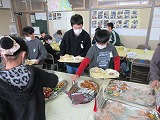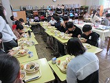 自分で栄養のバランスを考えておかずを選んだり、マナーを意識して食べたりする食育として、また、6年間の思い出を友達や先生と語り合ったりするひとときとして、特別給食を実施しています。