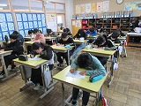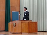 校長からは、夏から秋にかけての子ども達のがんばりを讃えるとともに、朝のあいさつが増えてきたことや、駅前で地域の人に優しい声がけをしてくれたことなどを紹介しました。また、年末年始は安全に気を付けて過ごすこと、お手伝いを進んでやってみることなども話しました。式では代表の5年生が2学期を振り返り、運動会など今年がんばったことや、6年生を引き継いでこれから鼓笛をがんばることなど、来年への抱負を立派に述べました。全校生の大きな拍手に包まれました。