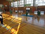 2年生が体育でゴムとび遊びをしています。