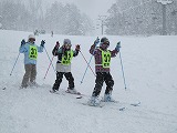 大雪も一休み。インストラクターのお話をよく聞いて、一生懸命にチャレンジしていました。リフトに初めて乗る子も、ドキドキでしたが、みんなで、楽しくスキーができました。がんばった後のお弁当は最高でした。