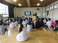 使用するきっかけやその後の常習性、使用後に及ぼす影響など、真剣に話を聴く姿が見られました。また、かわいいイラストがついていたり、キャンディーのようなきれいな色をしていたり、様々な種類の薬物の模型などを見ながら詳しく教えていただきました。将来に向けて健全な生活を営む力を身に着けてほしいと願っています。
