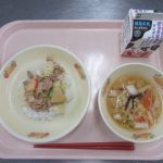 今日の献立は、ごはん、ピーマンメンチカツ、きんぴらごぼう、みそかきたま汁、牛乳です。