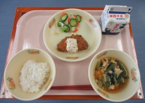 2025年10月1日 / 最終更新日時 : 2025年10月1日 toubusho 給食 10月1日(水) 今日の給食は 【★減塩・ベジアップ献立】 ご飯、★鮭フライのビーンズタルタルソースかけ、浅漬け、豆腐とえのきのみそ汁、牛乳 です。 Facebooktwitter