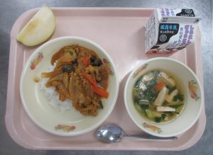 2025年11月10日 / 最終更新日時 : 2025年11月10日 toubusho 給食 11月10日(月) 今日の給食は ご飯、和風カレー丼、青菜のスープ、りんご(王林)、牛乳 です。 Facebooktwitter