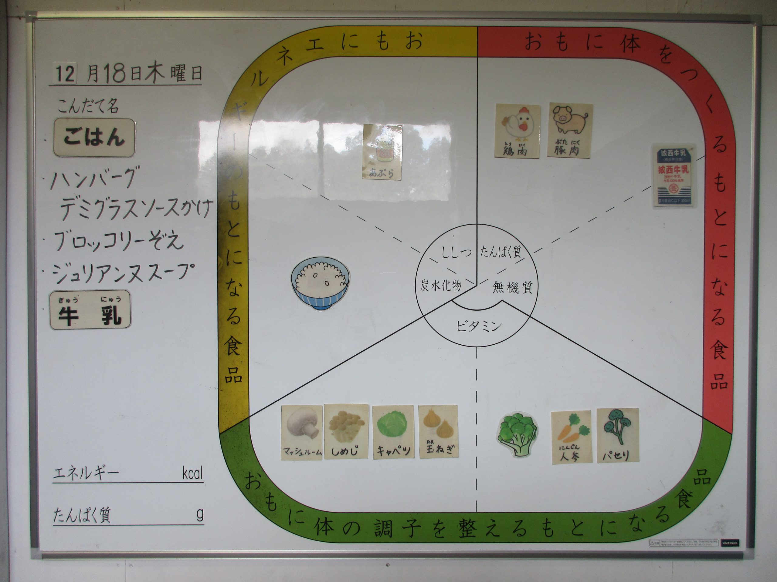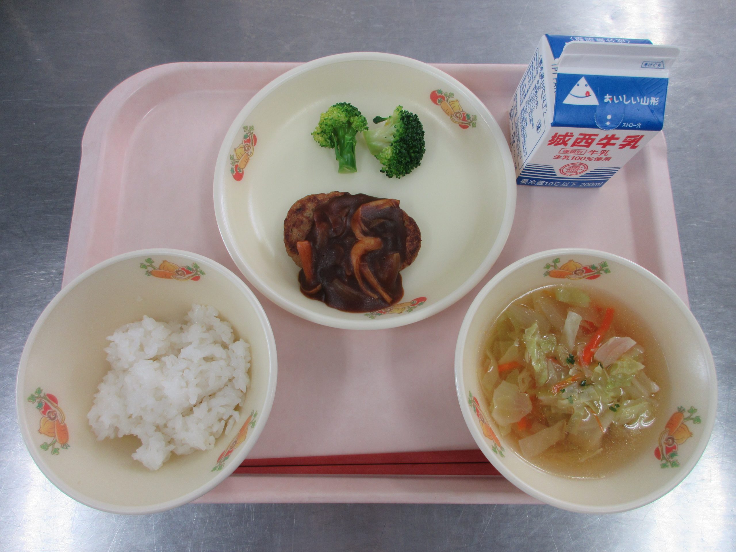 2025年12月18日 / 最終更新日時 : 2025年12月18日 toubusho 給食 12月18日(木) 今日の給食は ご飯、ハンバーグデミグラスソースかけ、ブロッコリー添え、ジュリアンヌスープ、牛乳 です。 Facebooktwitter