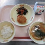 今日の給食は タコライス、豆腐のスープ、牛乳 です。