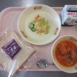 2024年10月31日 / 最終更新日時 : 2024年10月31日 toubusho 未分類 10月31日(木) 今日の給食は【ハロウィン献立】 食パン、かぼちゃチーズコロッケ、ツナサラダ、ミネストローネ、アプリコットジャム、牛乳 です。