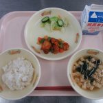 2025年7月14日 / 最終更新日時 : 2025年7月14日 toubusho 給食 7月14日(月) 今日の給食は 【食育の日献立】 ご飯、カラフルもずく丼、青菜のスープ、ミニトマト、牛乳 です。